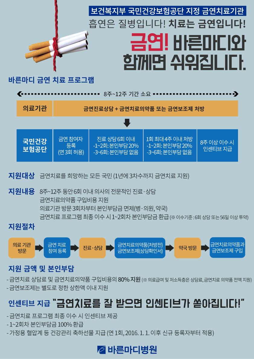 바른마디병원 금연클리닉 프로그램을 통해 금연에 성공해 보세요.