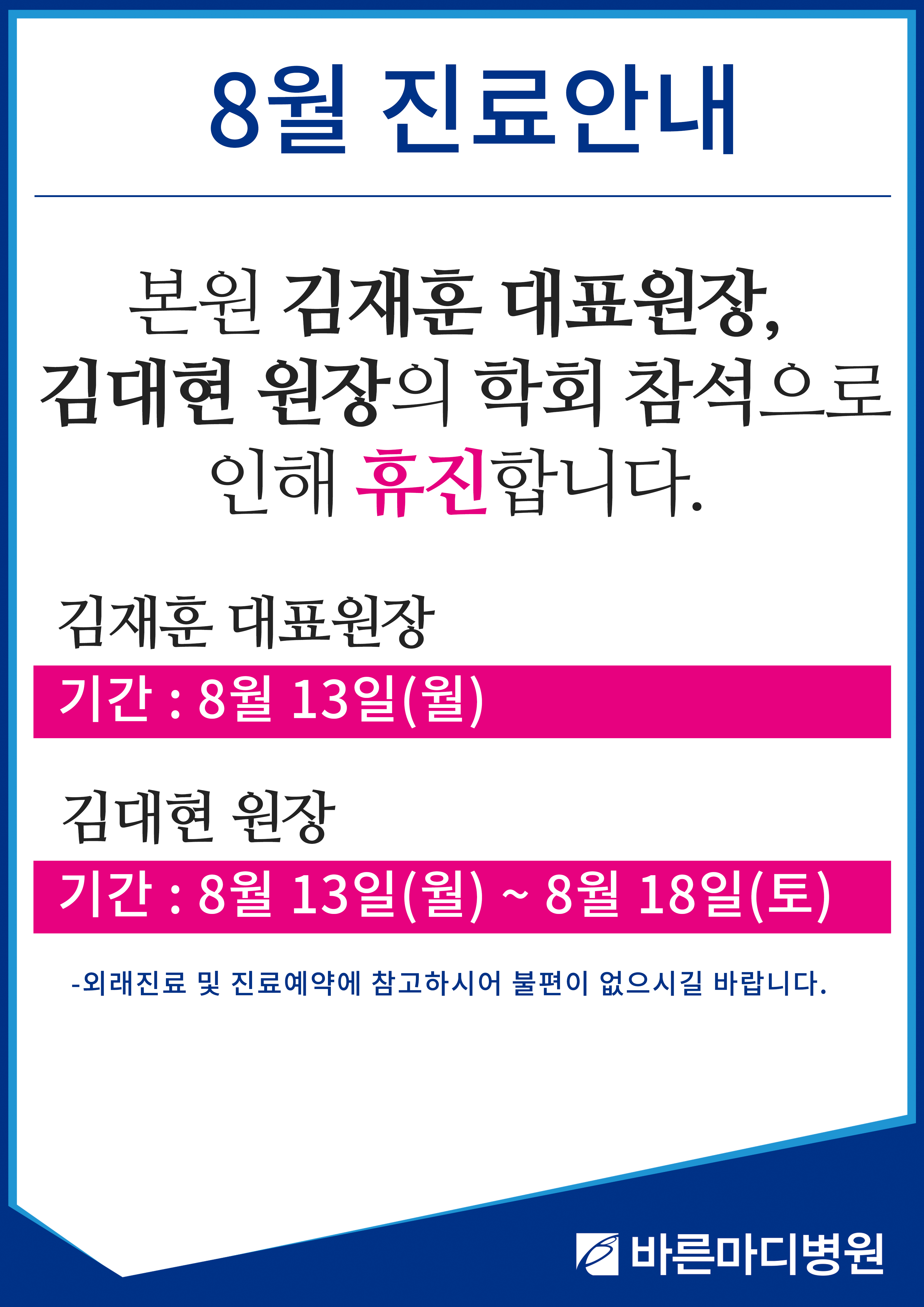 김재훈 원장, 김대현 원장 휴진 안내
