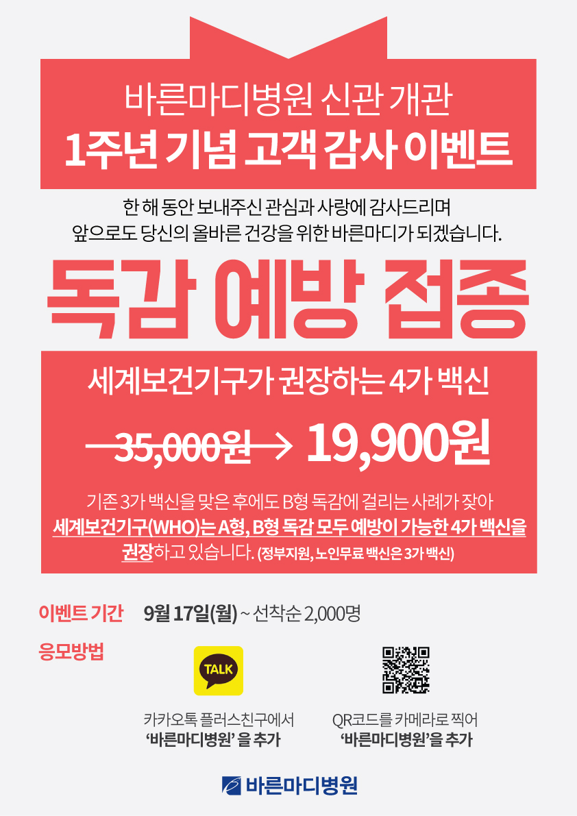 독감 예방 접종 (4가) 이벤트를 실시합니다.