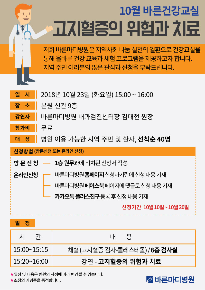 저희 바른마디병원에서는 지역사회 나눔 실천의 일환으로 건강교실을 통해