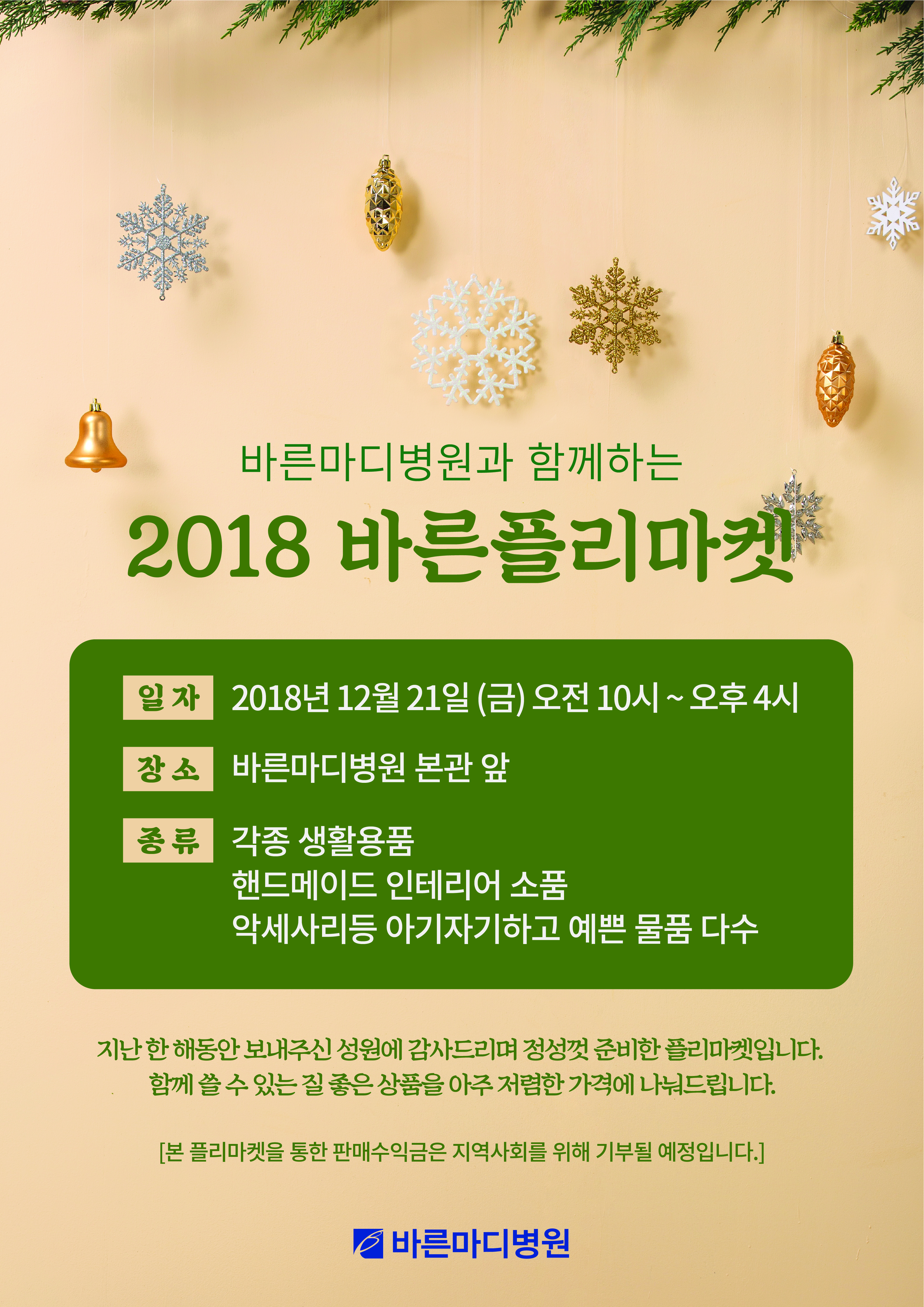 지난 한 해동안 보내주신 성원에 감사드리며 병원 직원들이 정성껏 준비한 플리마켓입니다.
