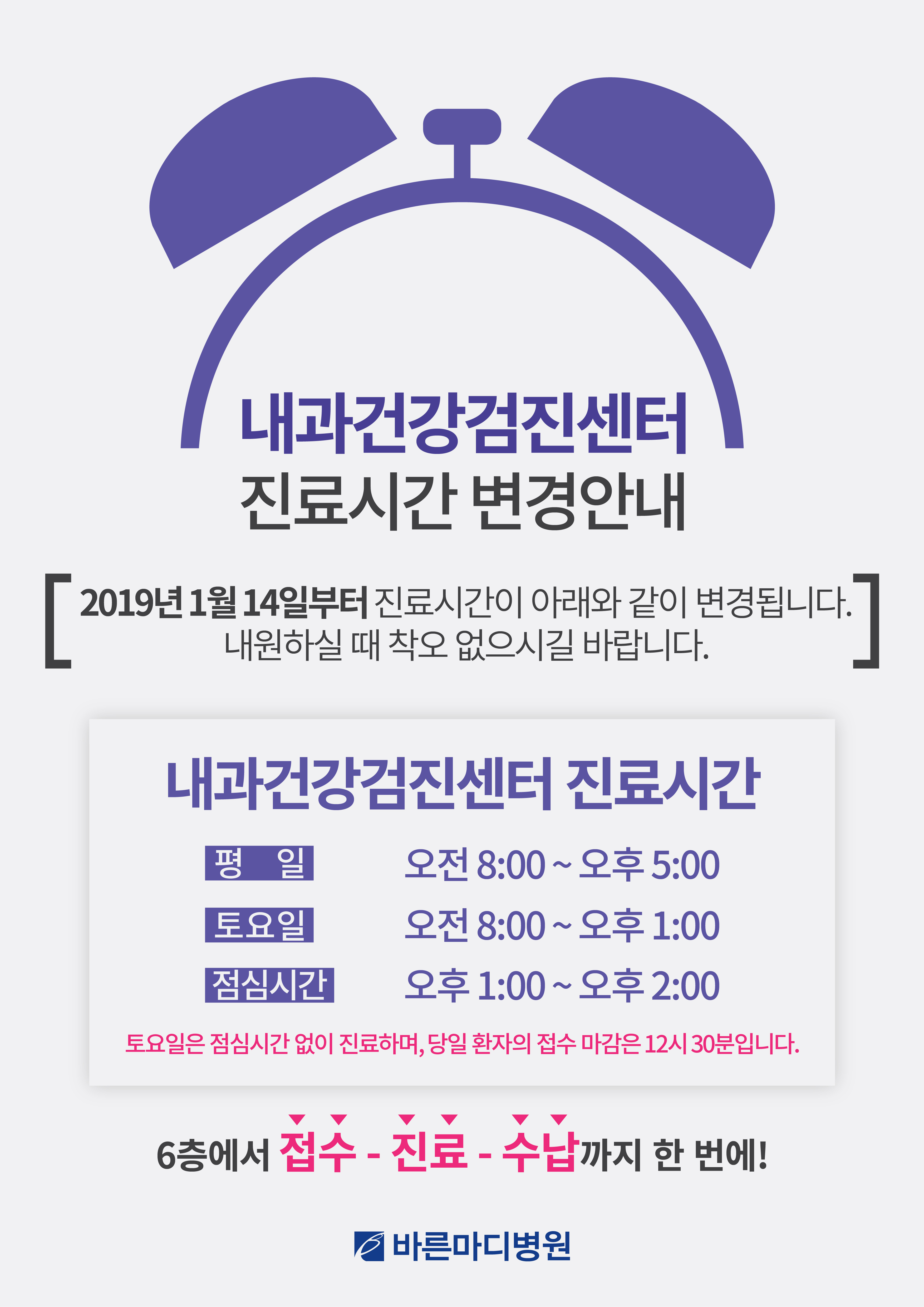 내과건강검진센터 진료 시간 변경 안내