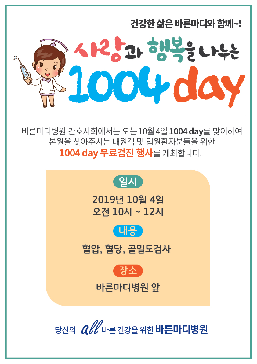 저희 바른마디병원 간호부에서는 10월 4일 1004데이를 맞아