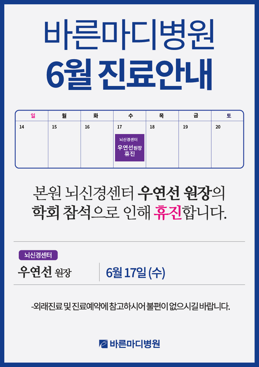 본원 뇌신경센터 우연선 원장의 학회 참석으로 인해