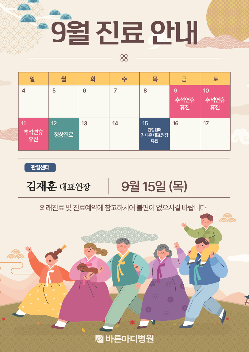 본원 관절센터 김재훈 대표원장의 휴진 일정과