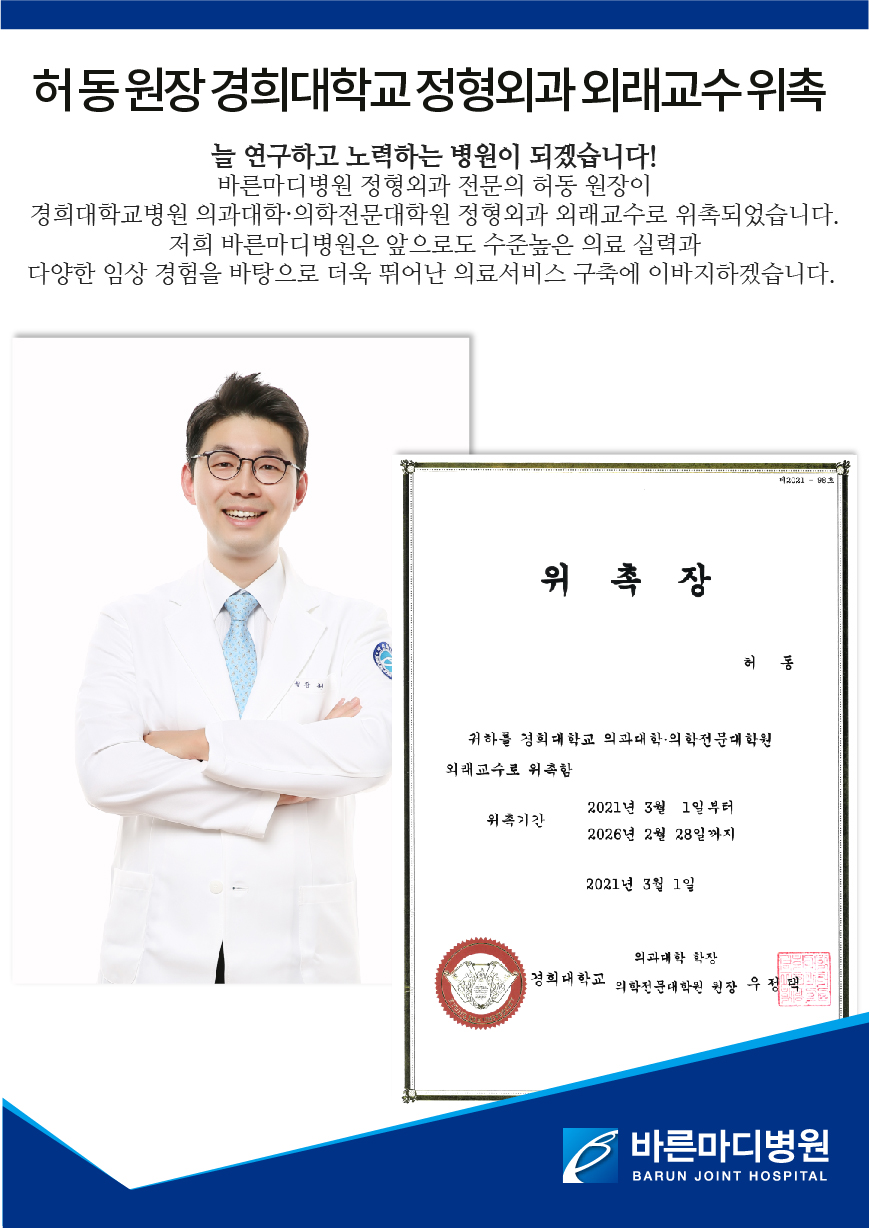 앞으로도 국내를 대표하는 첨단 연구에 참여하는 의료진과 바른마디병원이 되겠습니다!