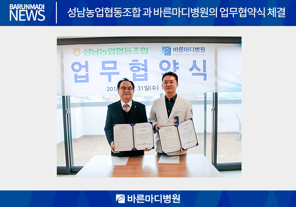 바른마디병원은 앞으로 성남농업협동조합원들이 더욱 건강하고 올바른 진료를 제공 받을 수 있도록 노력해 나갈 것입니다.