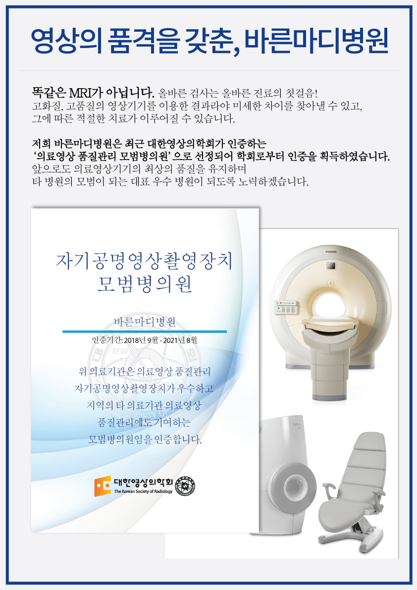 [대한영상의학회 선정 모범병의원 인증]