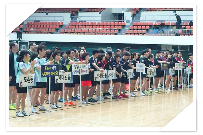모두들 땀흘리며 유쾌하게 탁구를 즐기는 모습에