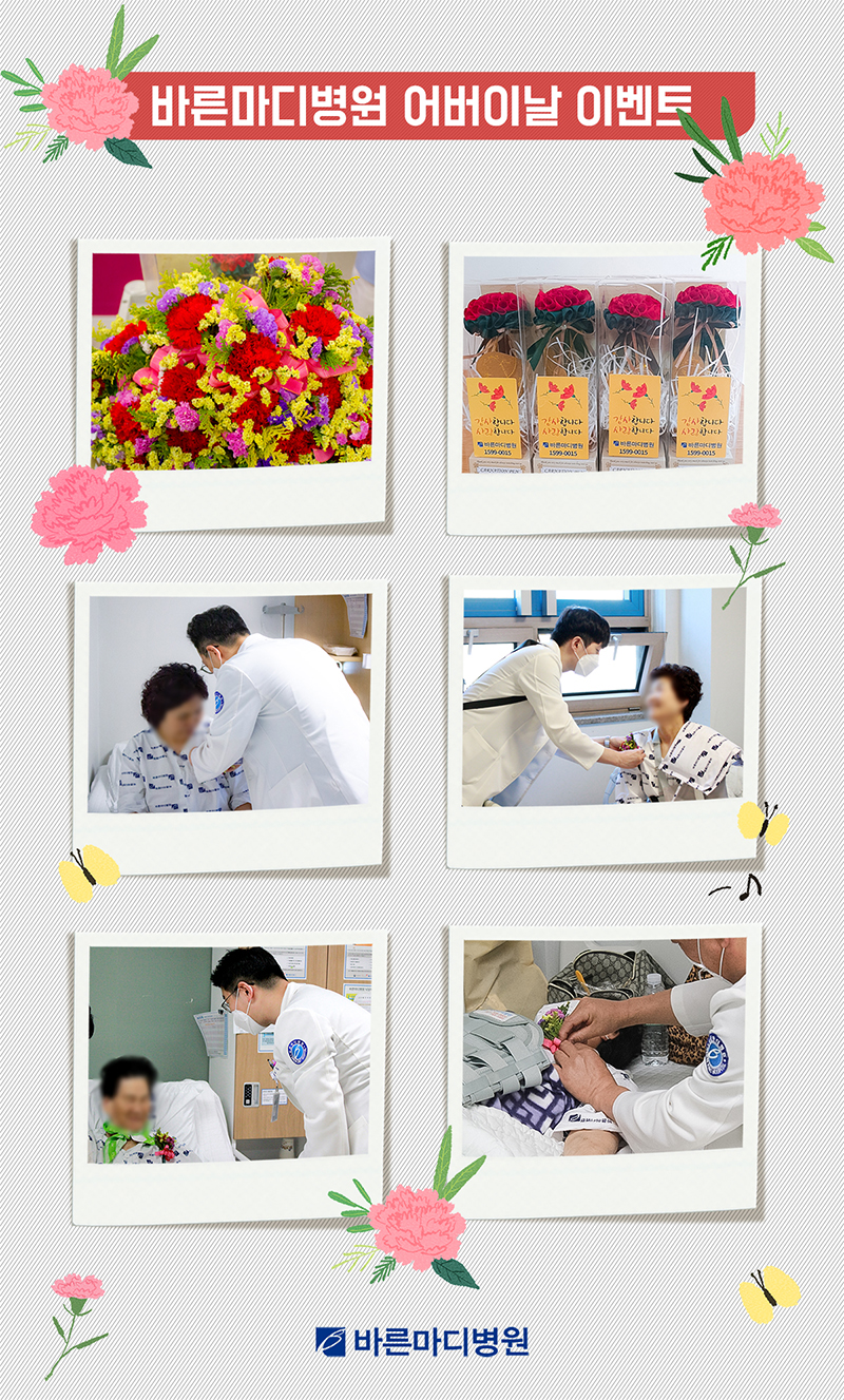 각자 담당 환자 분에게 카네이션을 건네 드리는