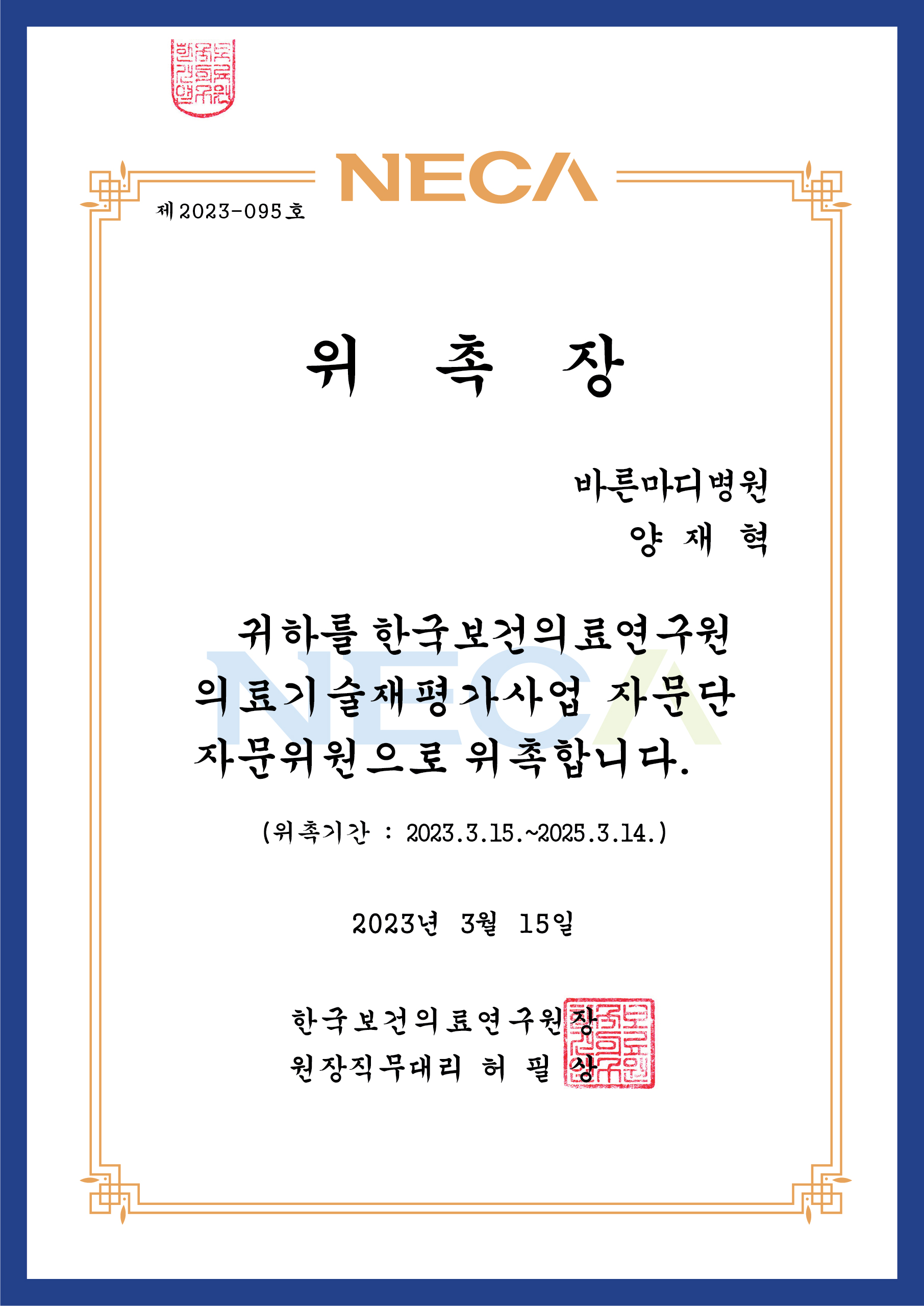 ▼ 한국보건의료연구원 의료기술재평가사업 자문위원 ▼