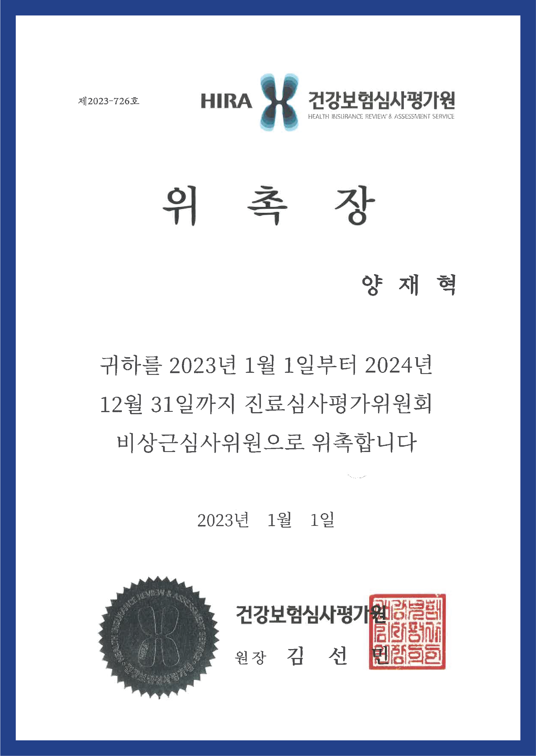 ▼ 건강보험심사평가원 진료심사평가위원회 비상근심사위원 ▼